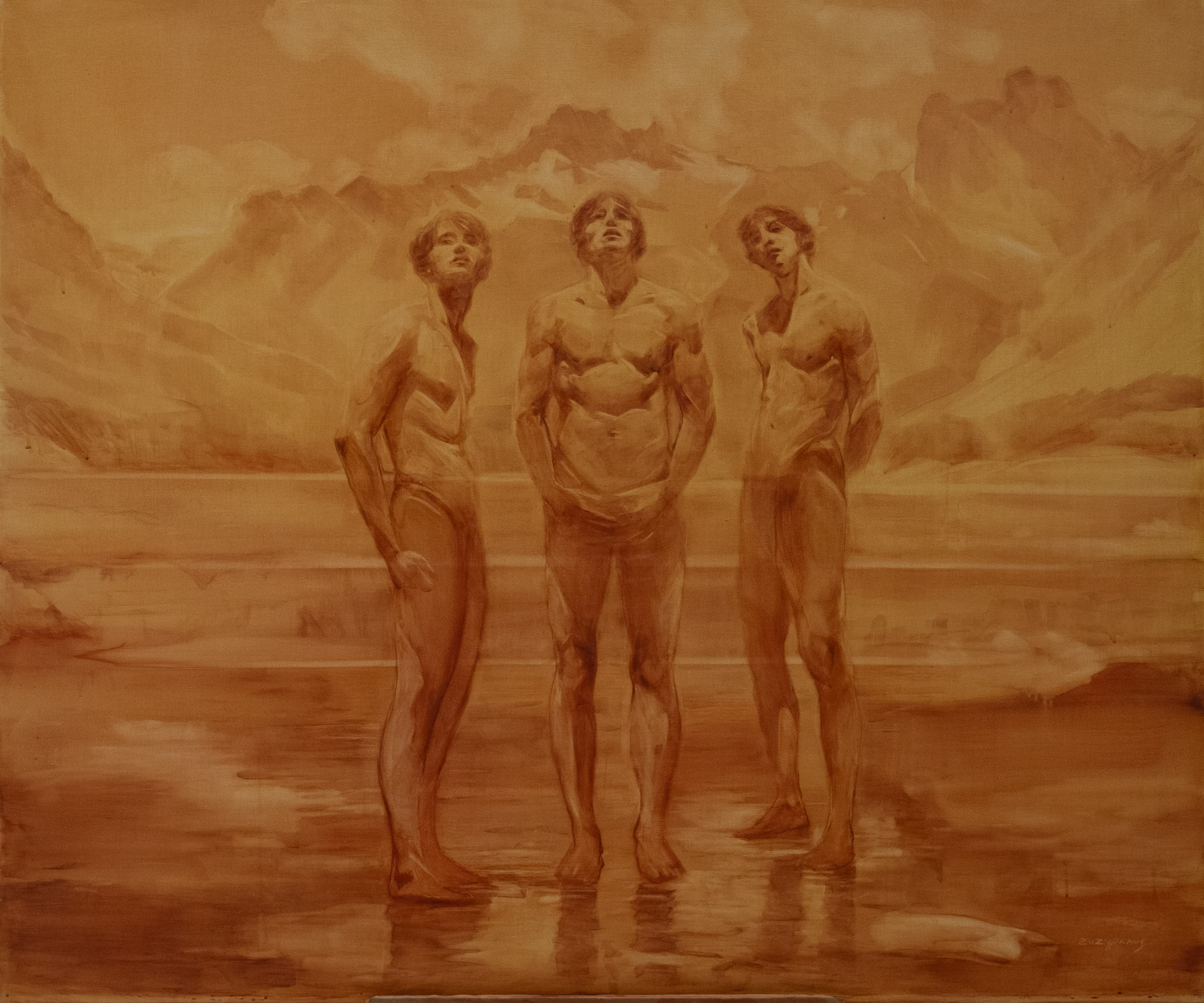 Monochromatic figurative paintings in egg tempera.